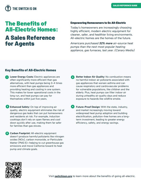 The Switch Is On initiative has earned the trust and recognition of consumers and partners in California as a reliable resource to learn about electric homes. With over two million visitors, our website has become a go-to platform for those seeking to understand and embrace the benefits of heat pumps, electric appliances, and all-electric homes. We are here to guide consumers to make the switch towards a cleaner, healthier way of living and working. We created this content portal for builders in different stages of the process to new home construction in California. We aimed to provide new home builders with resources to share with sales teams and consumers alike!